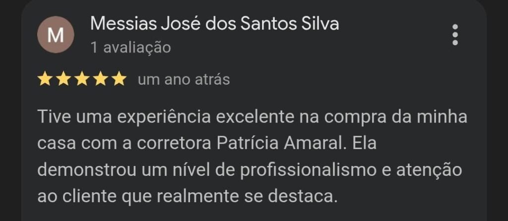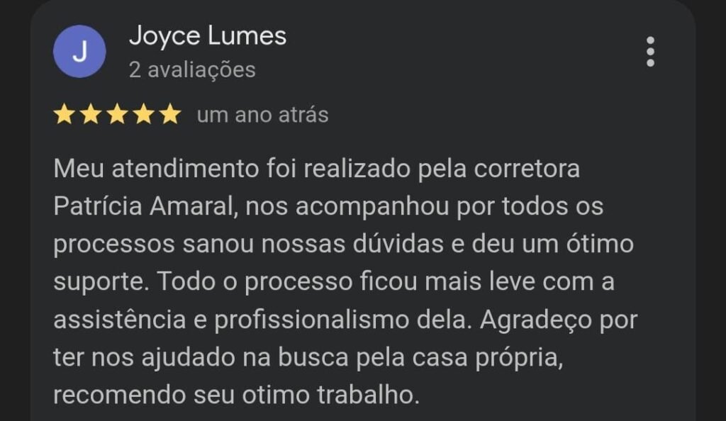 Realizar o sonho da casa própria é algo que mexe com a gente de um jeito que poucas coisas na vida conseguem. E ter vivido esse momento ao lado da Patrícia Amaral fez toda a diferença. Desde o primeiro contato, senti segurança, cuidado, atenção aos detalhes e, principalmente, um compromisso verdadeiro com o meu sonho.